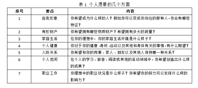 2、個(gè)人愿景主要包含的內(nèi)容,如下表1:
